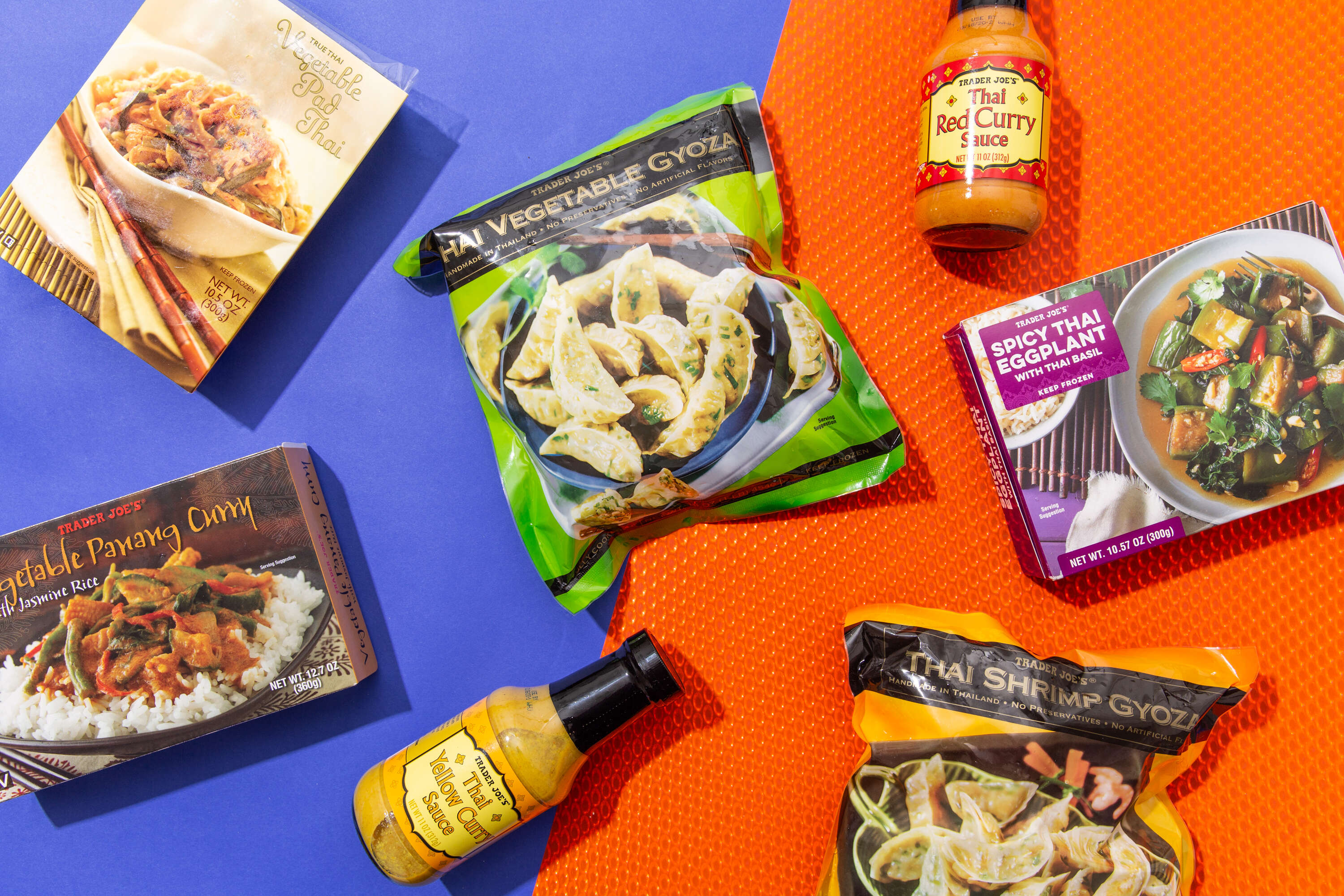 This is the best recipe ever for barbecue shrimp, very tasty with a little kick! You will never try another marinade again for shrimp.Ingredients | Thai Shrimp Gyoza Trader Joe's3 tablespoons fresh lemon juice1 tablespoon soy sauce1 tablespoon Dijon mustard2 cloves garlic, minced1 tablespoon brown sugar2 teaspoons curry paste1 pound medium shrimp - peeled and deveinedDirectionsIn a shallow dish or resealable bag, mix together the lemon juice, soy sauce, mustard, garlic, brown sugar and curry paste. Add shrimp, and seal or cover. Marinate in the refrigerator for 1 hour.Preheat a grill for high heat. When the grill is hot, lightly oil the grate. Thread the shrimp onto skewers, or place in a grill basket for easy handling. Transfer the marinade to a saucepan, and boil for a few minutes.Grill shrimp for 3 minutes per side, or until opaque. Baste occasionally with the marinade.Info | Thai Shrimp Gyoza Trader Joe'sprep: 1 hr cook: 6 mins total: 1 hr 6 mins Servings: 8 Yield: 8 servings